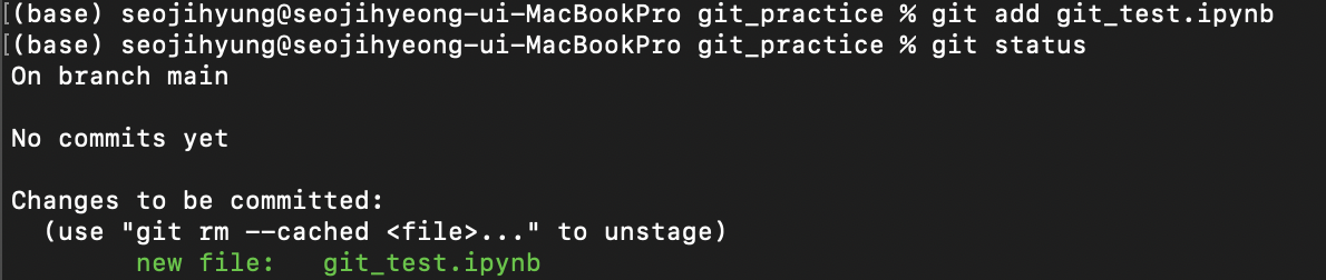 (기존에 stage에 올린 파일에 print문 한줄을 추가해서 다시 add해봤다)