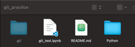 (Git Working Direcoory로 설정한 git_practice에 한줄 코드를 적어 git_test.ipynb (jupyter) 파일을 작업했다)
